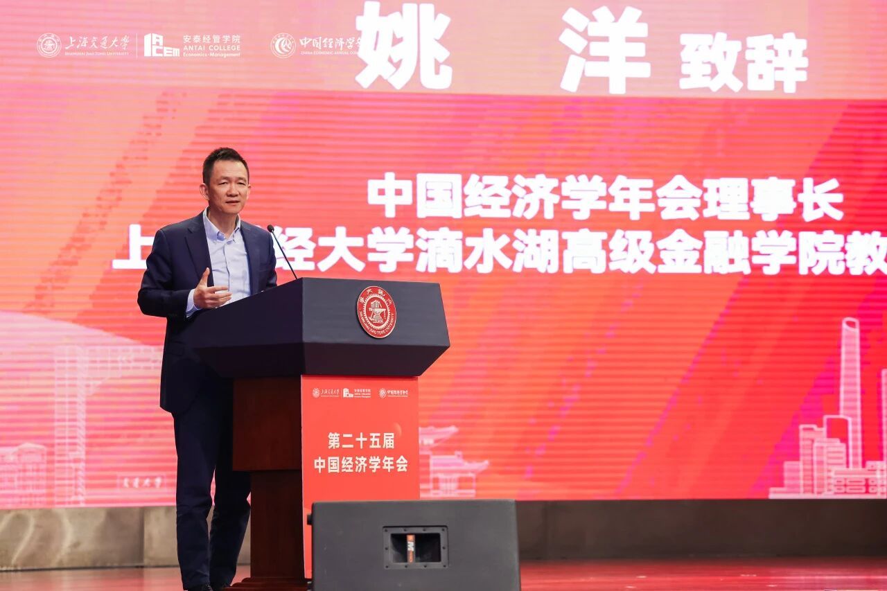 姚洋在致辞中感谢了承办方上海交通大学安泰经济与管理学院,以及各理事单位和办会单位的长期支持。本届年会适逢其五年理事长任期届满,经理事单位投票通过,将由复旦大学经济学院院长张军教授接任理事长一职。姚洋回顾了年会过去五年的三项重要工作,设立“海闻讲座”、邀请国际学者分享前沿成果,组建13个青年学者专业委员会,创立每年评选10位优秀博士生的“学术新星”机制。他表示,年会的参与度持续升高,整体规模再创新高,相信在新任理事长的引领下,年会将持续发挥学术交流主平台的作用,并期待更多高校参与其中,共同推动中国经济学研究迈向更高水平。