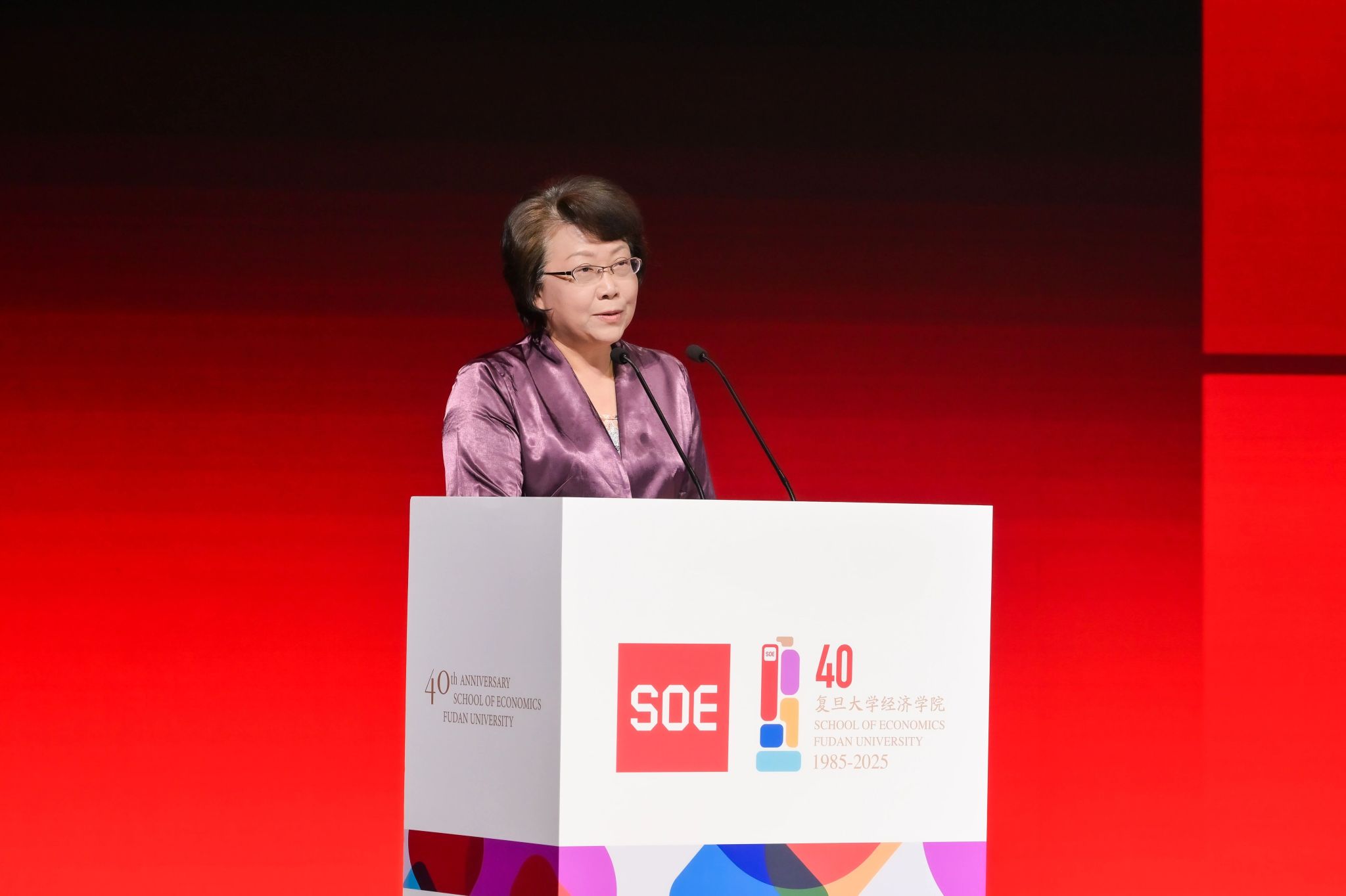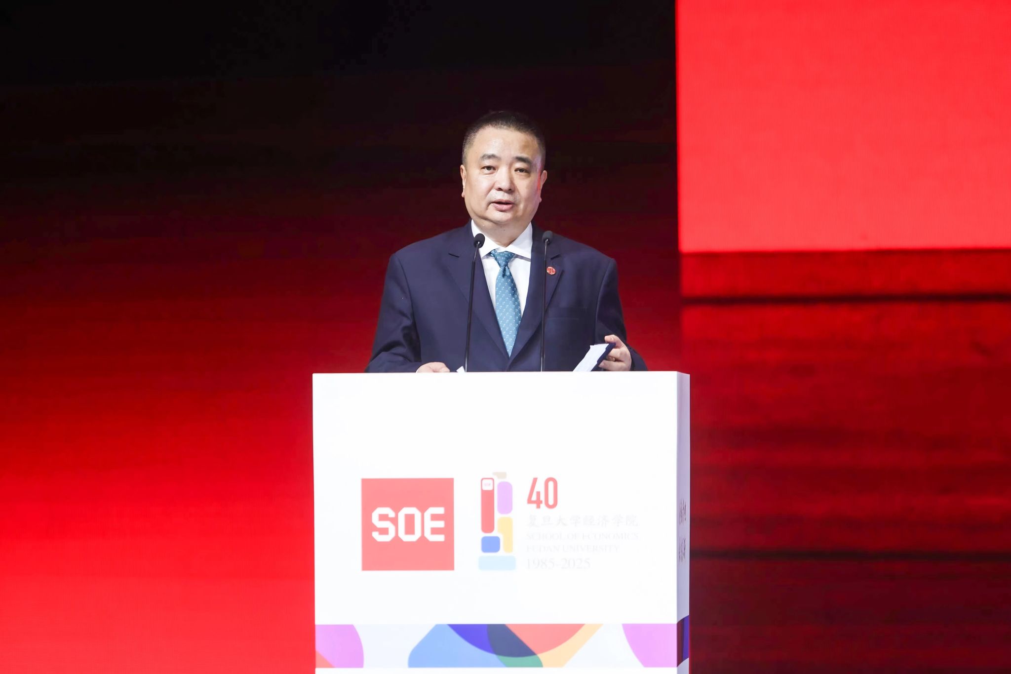 上海市委宣传部副部长权衡在致辞中指出,上海是我国改革开放的前沿,也是世界观察中国的重要窗口。复旦大学经济学院始终与上海这座城市同频共振、双向奔赴。他用三个“四十年”概括了学院的成就:风雨兼程,坚守马克思主义政治经济学立场,探寻中国治理之道;砥砺前行,坚持国家站位与国际视野,为上海重大决策提供真知灼见;春华秋实,培养了一批批践行“经世济民”院训的杰出校友。他期待学院在“十五五”规划谋划之际,聚焦上海“五个中心”建设使命,持续推进知识创新、理论创新、方法创新,为中国式现代化提供坚强智力支撑。